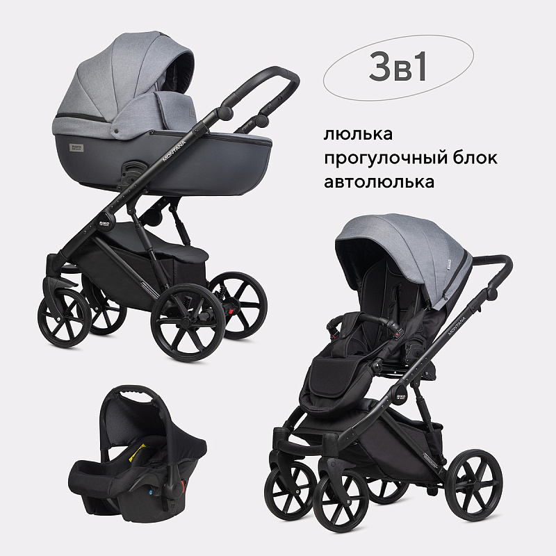 Детская коляска Riko Basic Montana Plus 3 в 1 40 Graphite (графит+серый)
