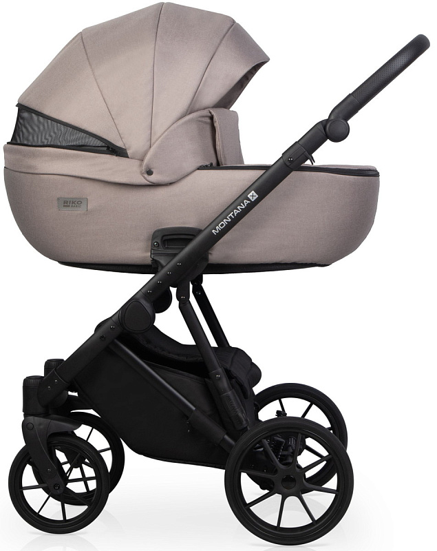 Обновленный дизайн топовой детской коляски 2 в 1 добавил модели актуальности и сделал ее еще комфортней и безопасней. RIKO BASIC MONTANA X покорит вас: новой архитектурой прогулочного блока; быстросъемными блоками с эффектом памяти; спинкой люльки, регулируемой с внешней стороны блока; регулируемой вентиляцией в дне люльки; мягкой регулируемой амортизацией; системой антишок на передних колесах; регулировкой капюшона с одной кнопки.