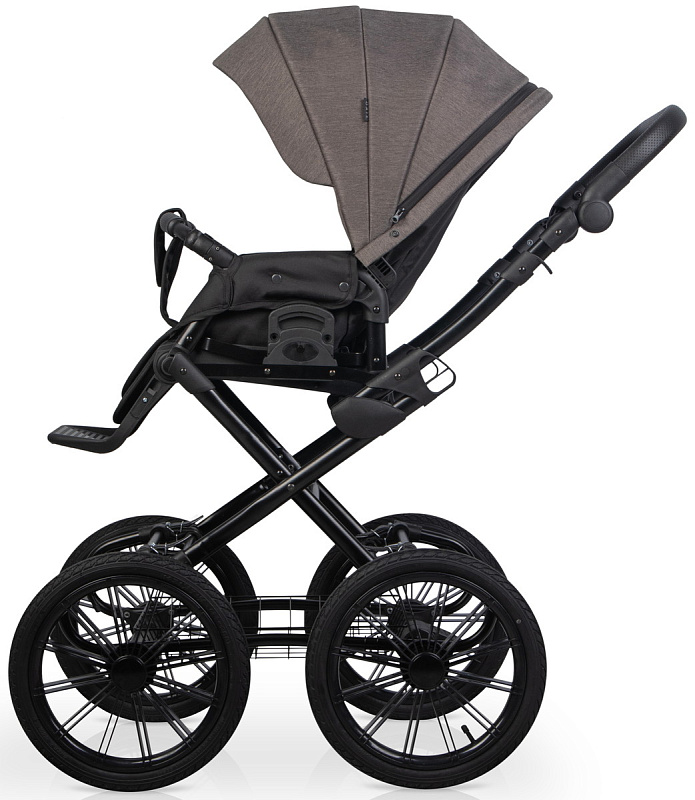 Детская коляска 2 в 1 RIKO BASIC MONTANA X PRESTIGE, выполненная из ткани, покорит вас: вездеходной классической рамой; быстросъемными блоками; спинкой люльки, регулируемой с внешней стороны блока; регулируемой вентиляцией в дне люльки; реверсивным прогулочным блоком.