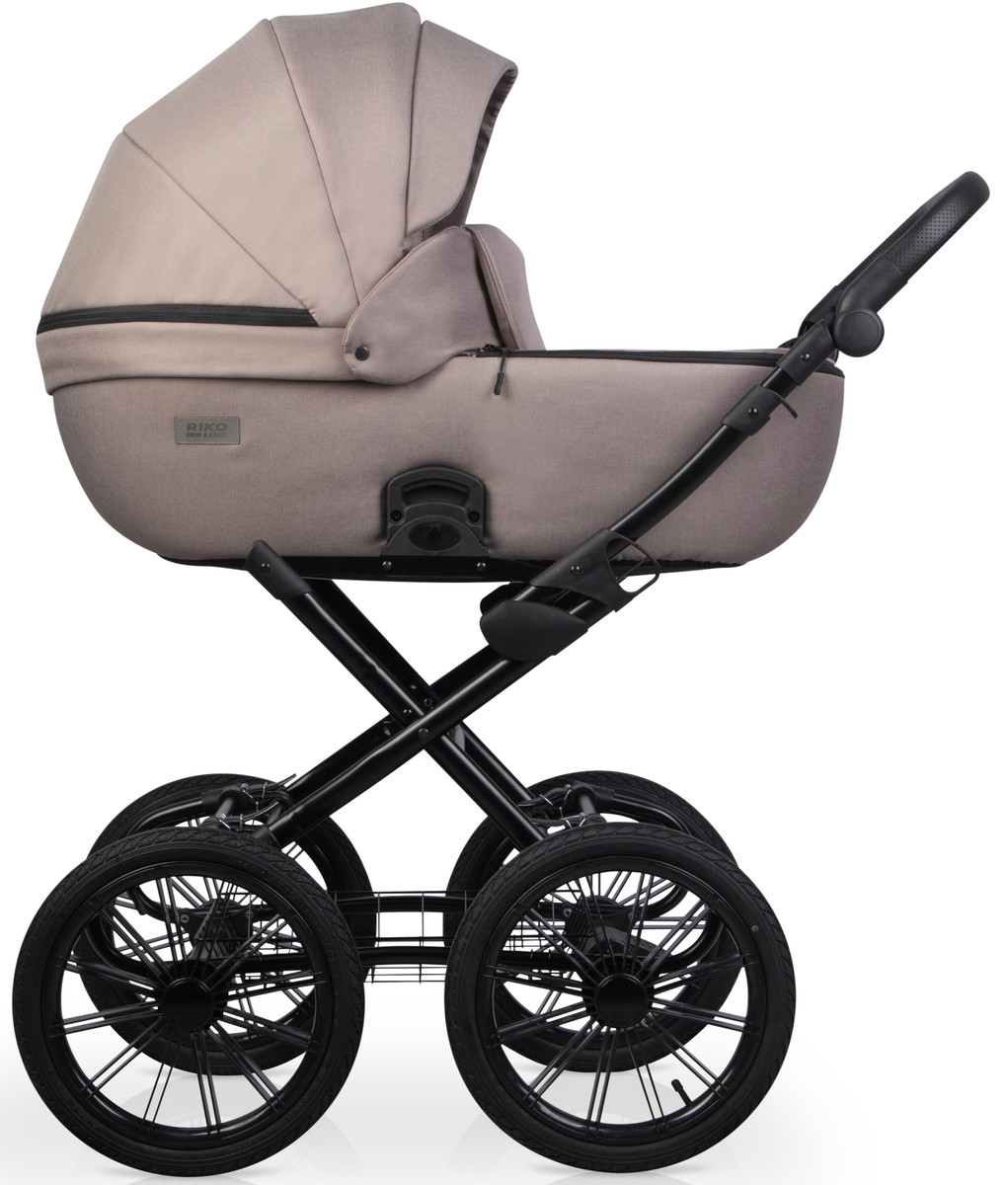 Детская коляска 2 в 1 RIKO BASIC MONTANA X PRESTIGE, выполненная из ткани, покорит вас: вездеходной классической рамой; быстросъемными блоками; спинкой люльки, регулируемой с внешней стороны блока; регулируемой вентиляцией в дне люльки; реверсивным прогулочным блоком.
