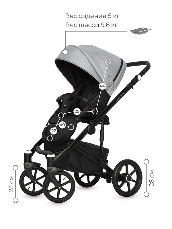 Коляска на лёгкой алюминиевой раме с большой корзиной для покупок. Практичная сумка для мамы прикрепляется на родительскую ручку. Надувные колёса, передние поворотные, есть возможность фиксации. Мягкая амортизация. Центральный ножной тормоз.