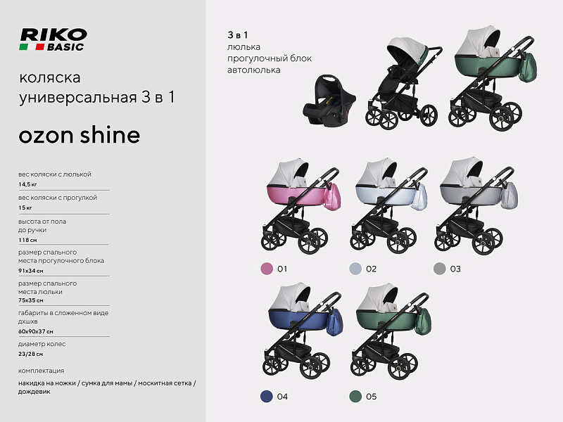 Детская коляска Riko Basic Ozon Shine 3 в 1 05 зелено-серый