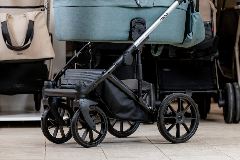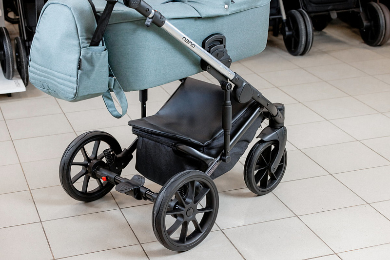 дополнительная регулируемая амортизация, расположенная в стойках, сделает ход коляски жестче или мягче (в зависимости от веса ребенка и типа дороги)
