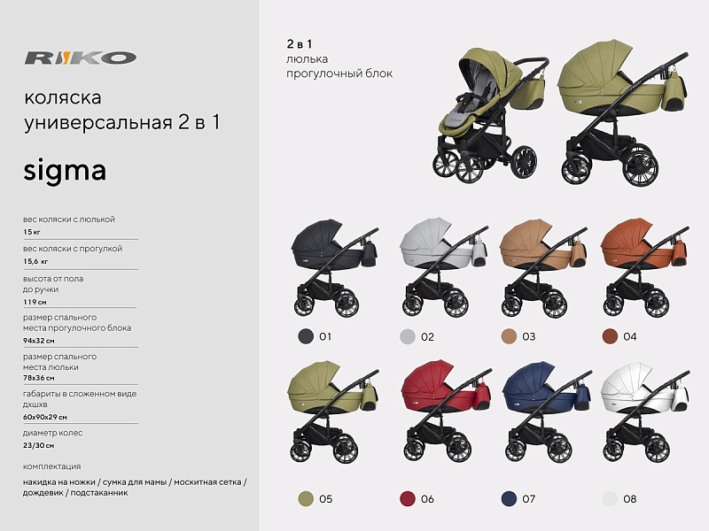Коляска Riko Sigma 2 в 1 новая модель, главной особенностью которой является легкая смена модулей.