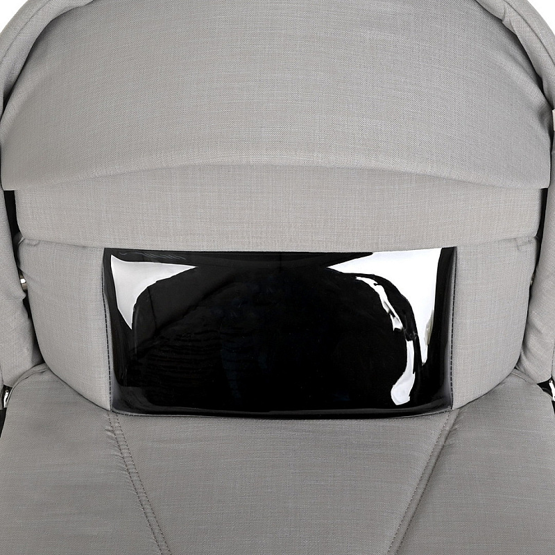- Накидка на люльку имеет дополнительный отворот со смотровым окном, сам отворот полностью закрывает ребенка от непогоды и крепится за счёт магнитов