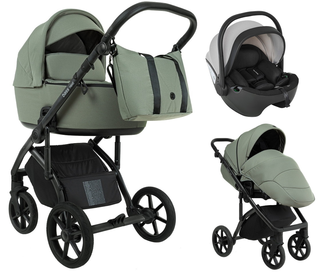 Детская коляска Roan Bass Next 2.0 3 в 1 с автокреслом Pituso Baesa Pro Black,Beige Canopy BSN/43/2 Sage Green/Black/руч.Black