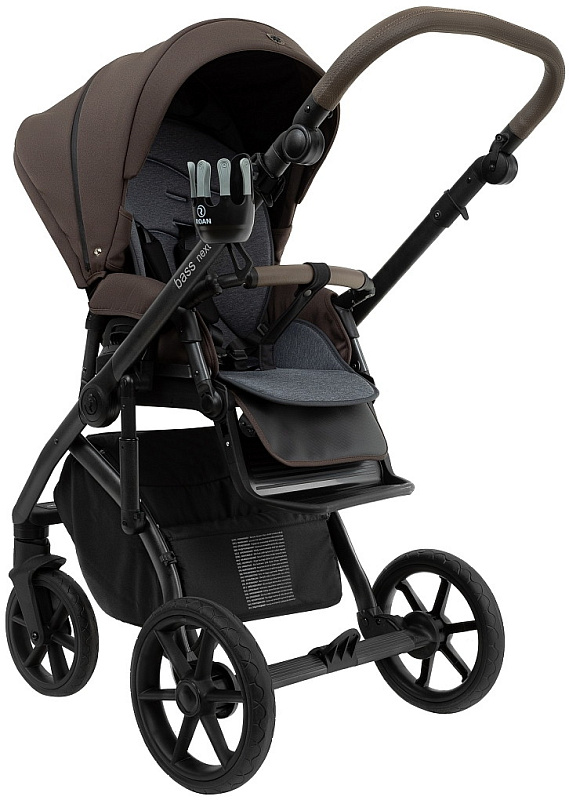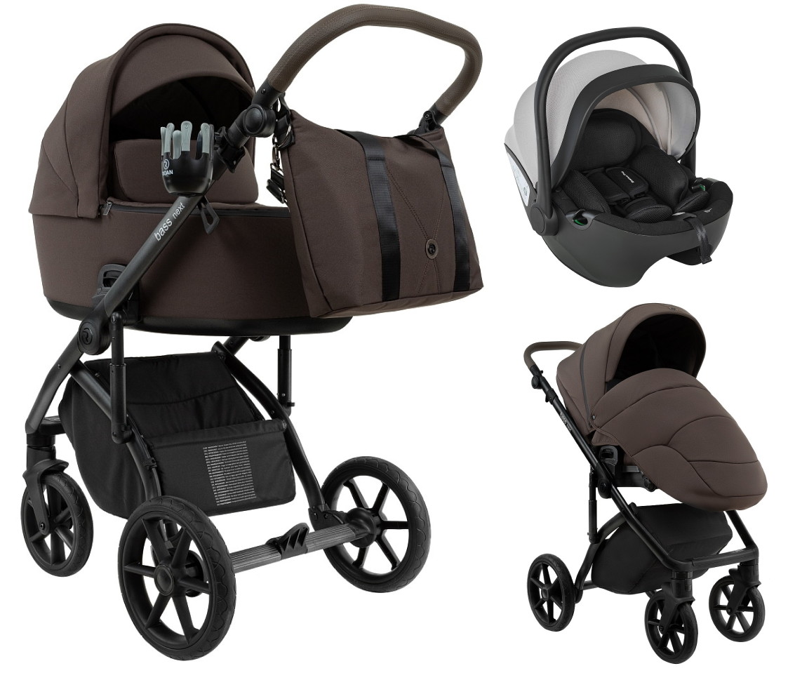 Детская коляска Roan Bass Next 2.0 3 в 1 с автокреслом Pituso Baesa Pro Black,Beige Canopy BSN/44/2 Turkish Coffe/Black/руч.Cappuccino
