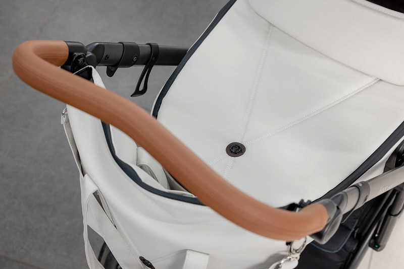Прогулочный блок имеет пятиточечные ремни безопасности и бампер-ограничитель с отделкой из экокожи. Бампер можно отсоединить с одной стороны и просто откинуть для удобства посадки ребенка.