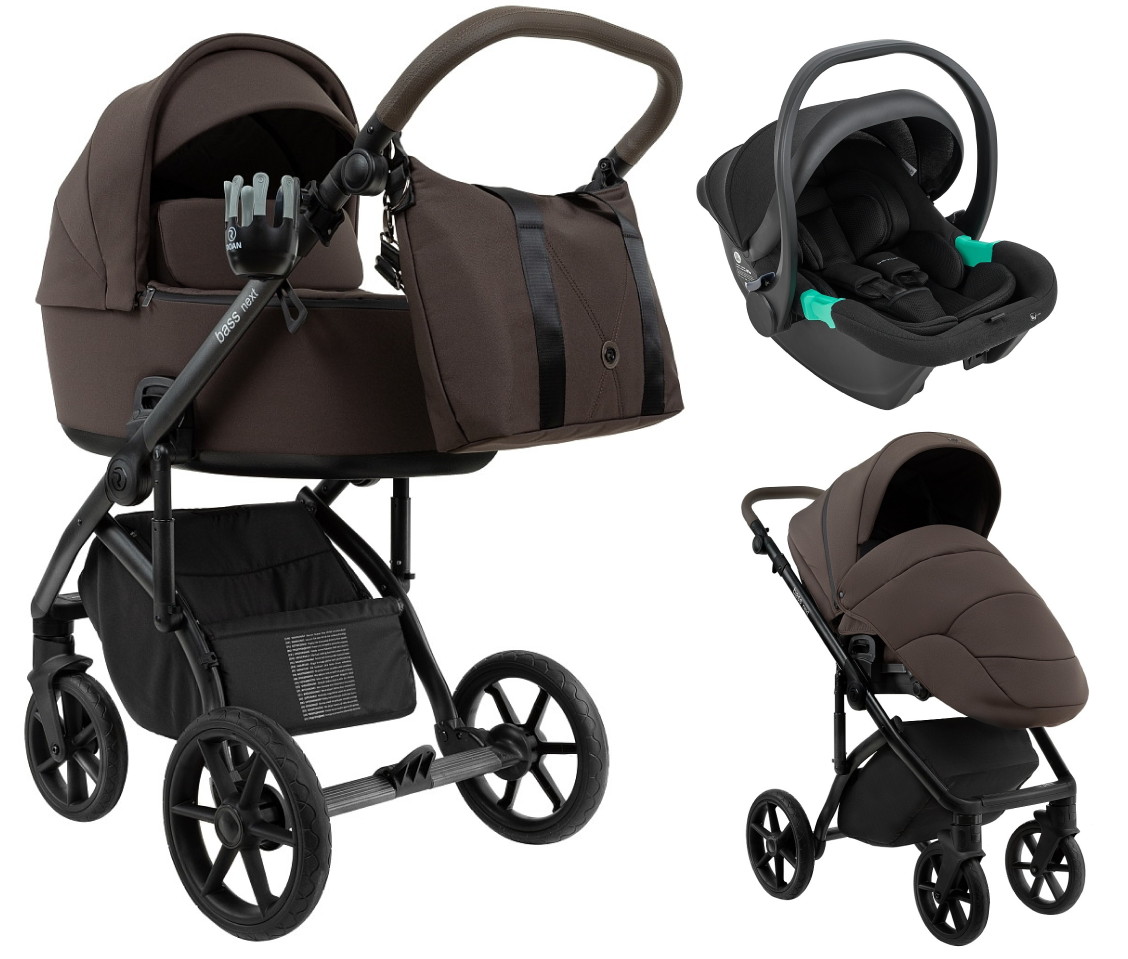 Детская коляска Roan Bass Next 2.0 3 в 1 с автокреслом Pituso Santiso Pro Black BSN/44/2 Turkish Coffe/Black/руч.Cappuccino