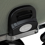 Специальный предохранитель не даст случайно сложить раму с ребенком, также поможет при размещении коляски в маленьком лифте.
