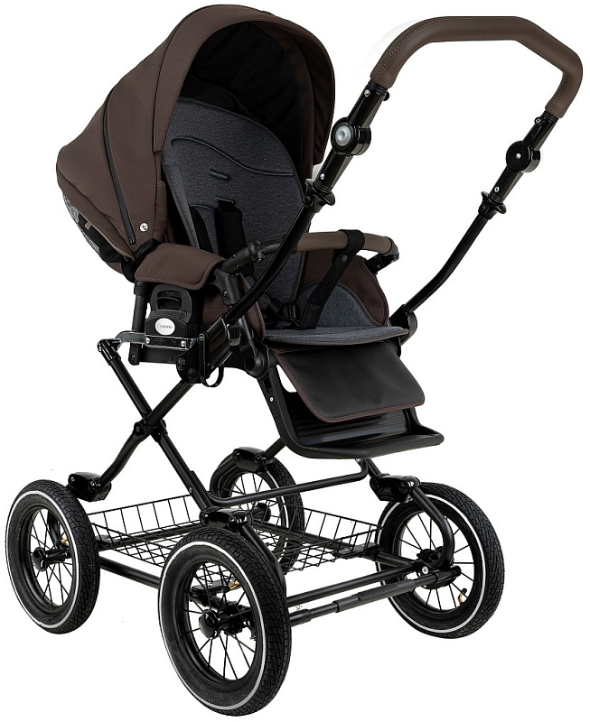 Детская коляска Roan Bass Next Classic d12 2.0 3 в 1 с автокреслом Tutis Elo Black BNC/83/2 Turkish Coffe/Black/руч.Cappuccino