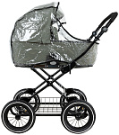 Накидка на люльку имеет дополнительный отворот со смотровым окном, сам отворот полностью закрывает ребенка от непогоды и крепится за счёт магнитов.