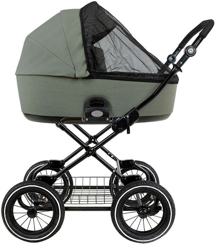 Главное достоинство такой рамы, что при движении по труднопроходимой местности колеса не вибрируют, коляска движется очень легко, а идеальная амортизация, основанная на кулисах, закрепленных в четырех точках, обеспечивает хороший сон для ребенка.
