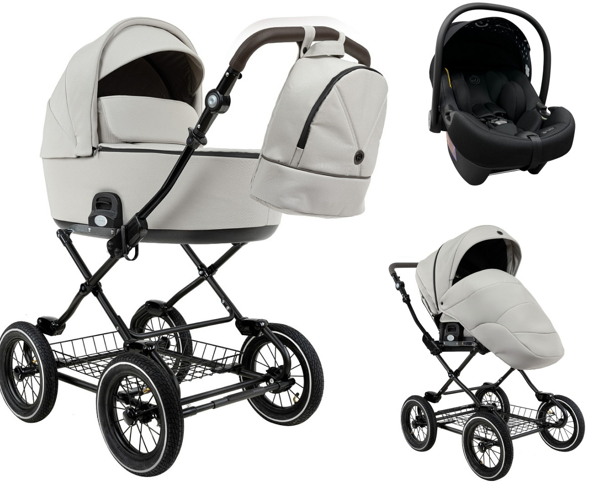 Детская коляска Roan Bass Next Classic d12 2.0 3 в 1 с автокреслом Tutis Elo Lux EduSky Black BNC/84/2 Marzipan/Black/руч.Cappuccino