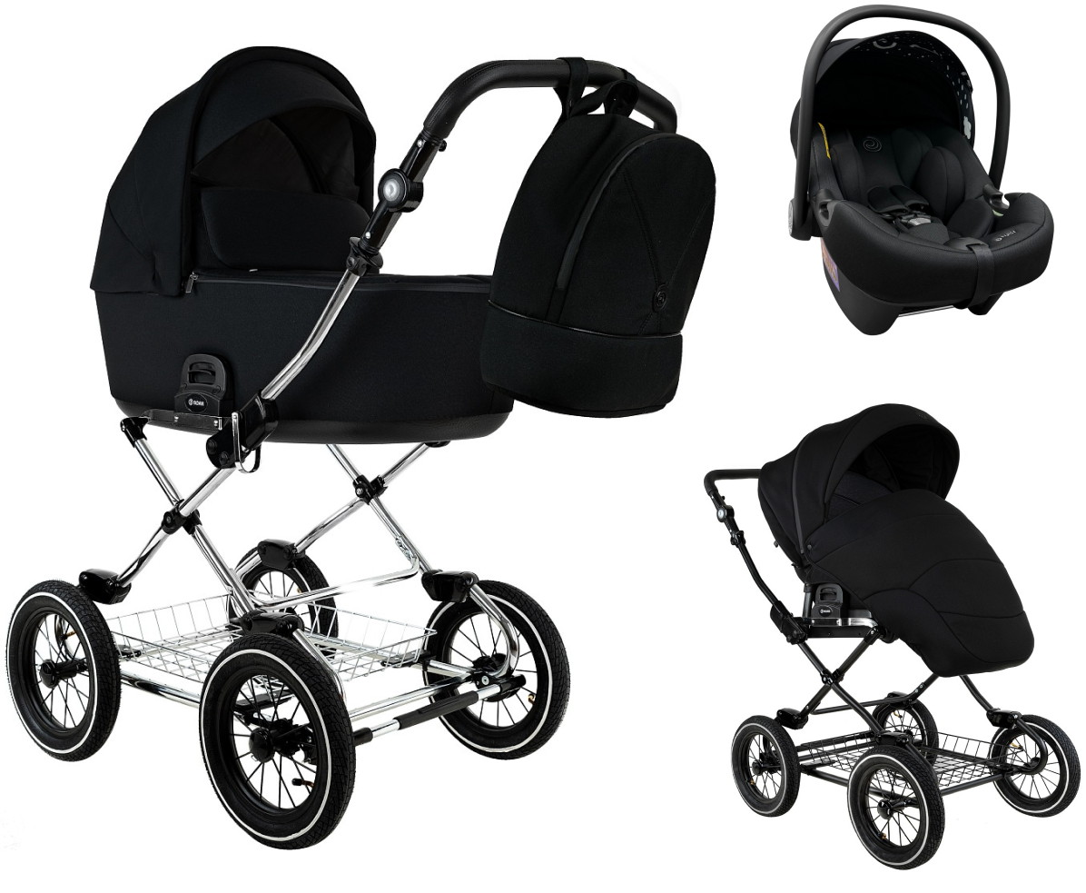 Детская коляска Roan Bass Next Classic d12 2.0 3 в 1 с автокреслом Tutis Elo Lux EduSky Black BNC/85/2 Caviar/Black/руч.Cappuccino