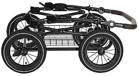 Главное достоинство такой рамы, что при движении по труднопроходимой местности колеса не вибрируют, коляска движется очень легко, а идеальная амортизация, основанная на кулисах, закрепленных в четырех точках, обеспечивает хороший сон для ребенка.