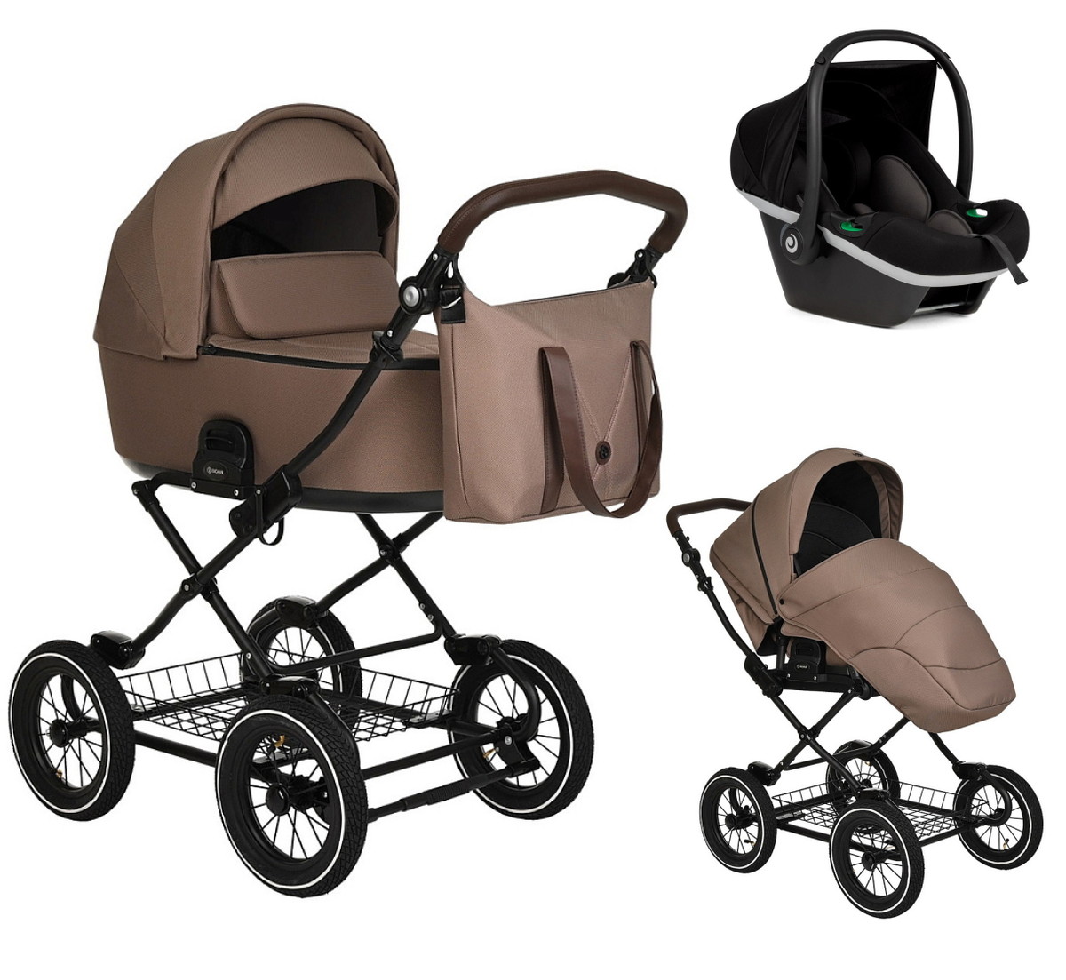 Детская коляска Roan Bass Next Classic d12 3 в 1 с автокреслом Tutis Elo Black RCL265/1 Raisin Mood