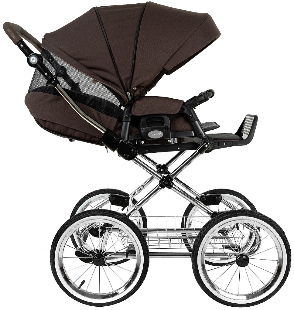Главное достоинство такой рамы, что при движении по труднопроходимой местности колеса не вибрируют, коляска движется очень легко, а идеальная амортизация, основанная на кулисах, закрепленных в четырех точках, обеспечивает хороший сон для ребенка.