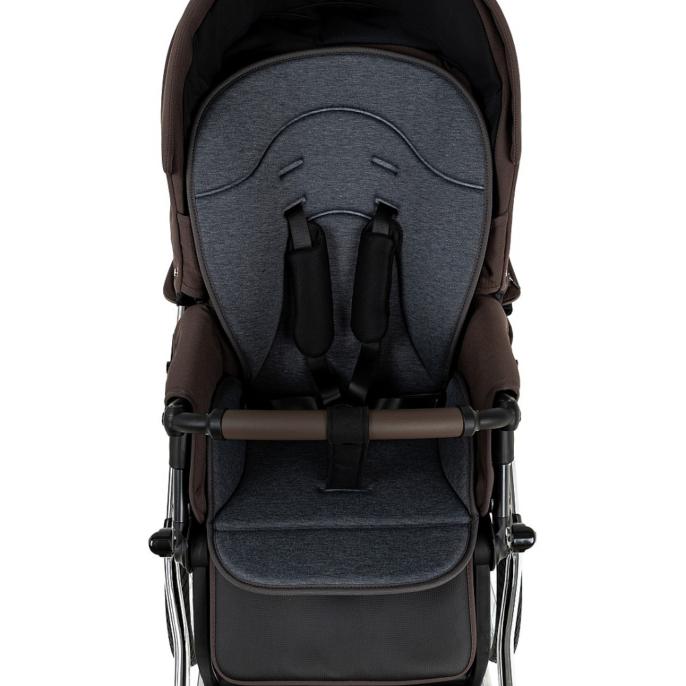 Прогулочный блок имеет пятиточечные ремни безопасности и бампер-ограничитель с отделкой из экокожи. Бампер можно отсоединить с одной стороны и просто откинуть для удобства посадки ребенка.