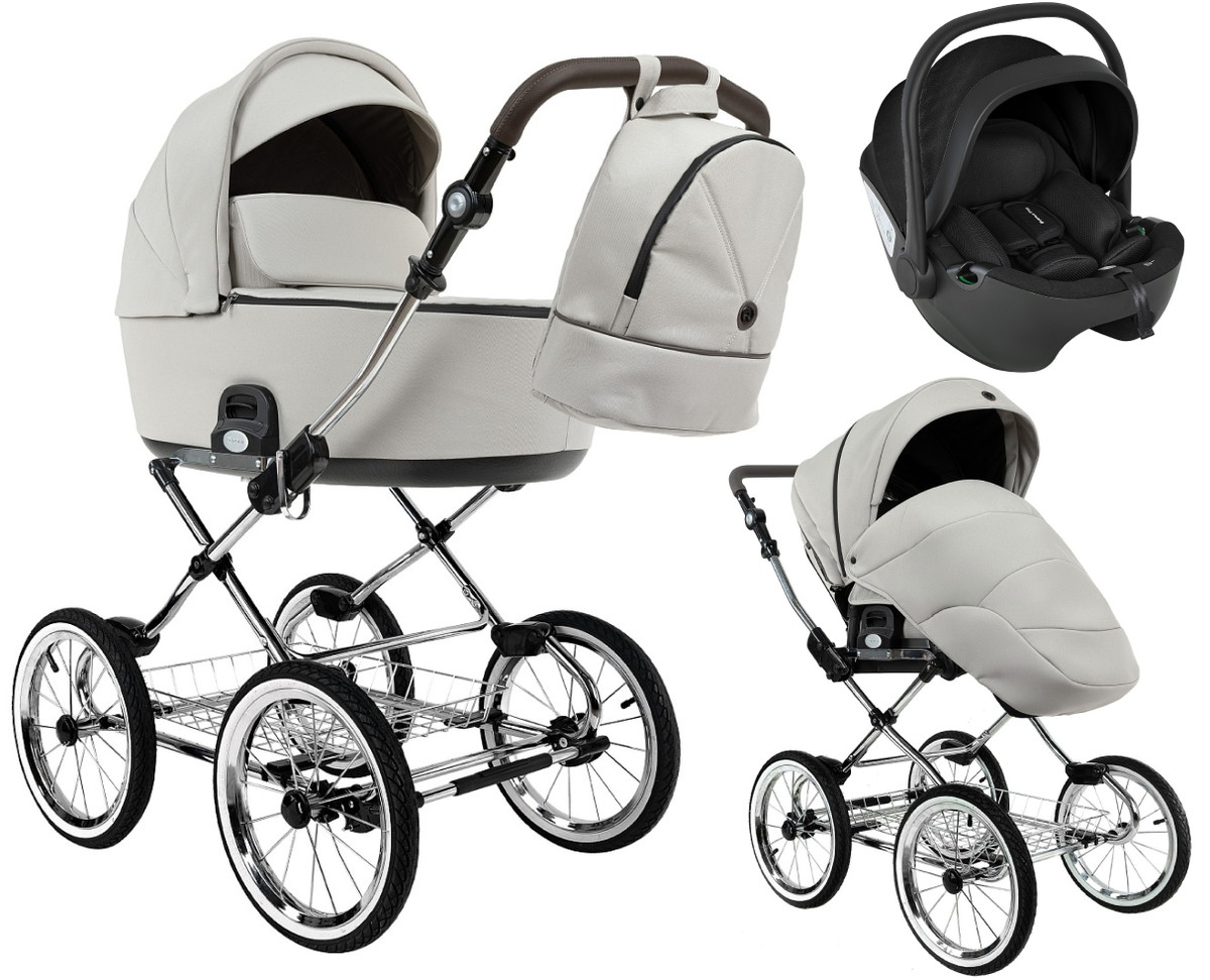Детская коляска Roan Bass Next Classic d14 2.0 3 в 1 с автокреслом Pituso Baesa Pro Black BSNC/94/2 Marzipan/Black/руч.Cappuccino