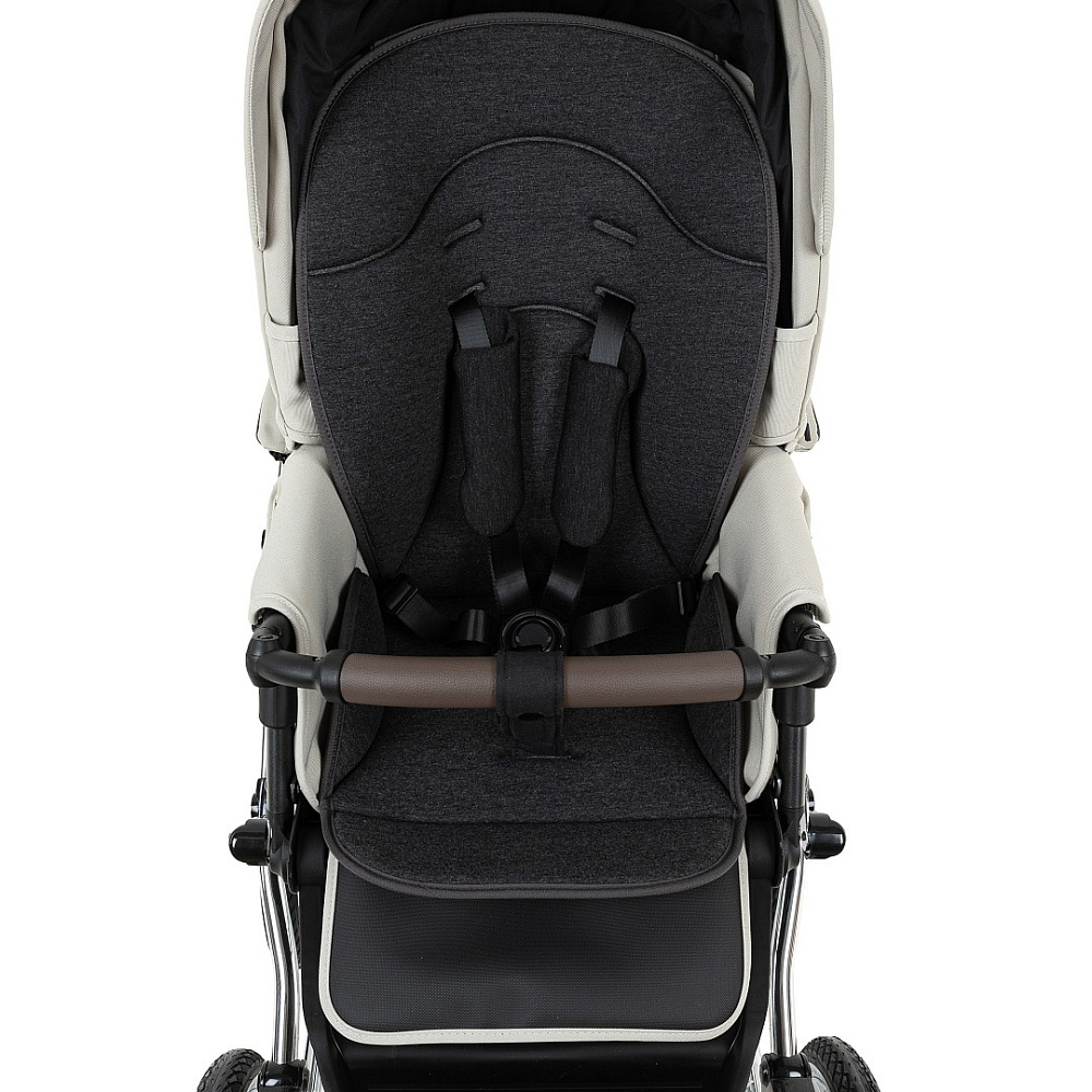 Прогулочный блок имеет пятиточечные ремни безопасности и бампер-ограничитель с отделкой из экокожи. Бампер можно отсоединить с одной стороны и просто откинуть для удобства посадки ребенка.