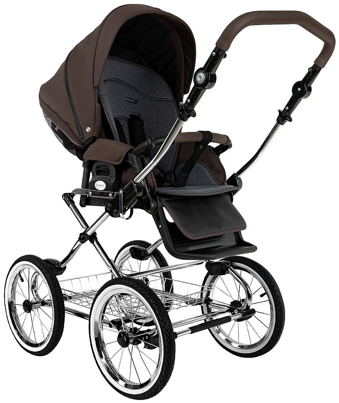 Детская коляска Roan Bass Next Classic d14 2.0 3 в 1 с автокреслом Pituso Santiso Pro Black BSNC/93/2 Turkish Coffe/Black/руч.Cappuccino