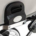 Специальный предохранитель не даст случайно сложить раму с ребенком, также поможет при размещении коляски в маленьком лифте.