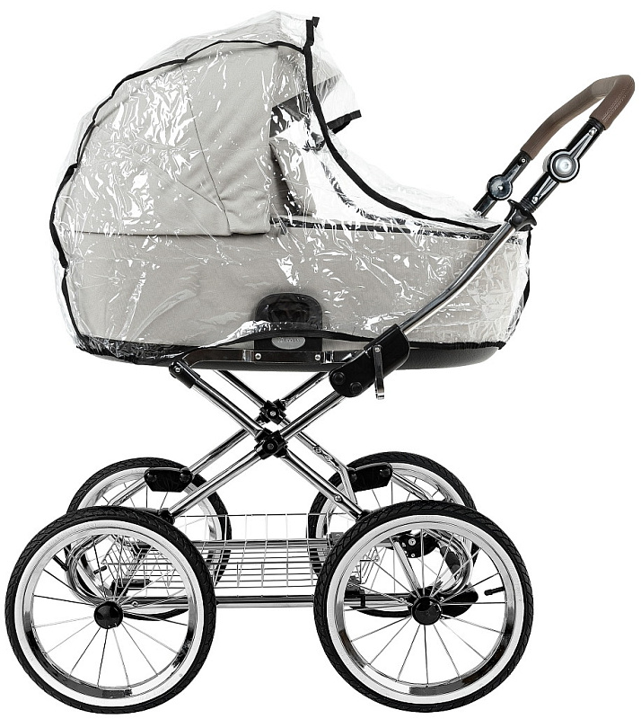 Накидка на люльку имеет дополнительный отворот со смотровым окном, сам отворот полностью закрывает ребенка от непогоды и крепится за счёт магнитов.