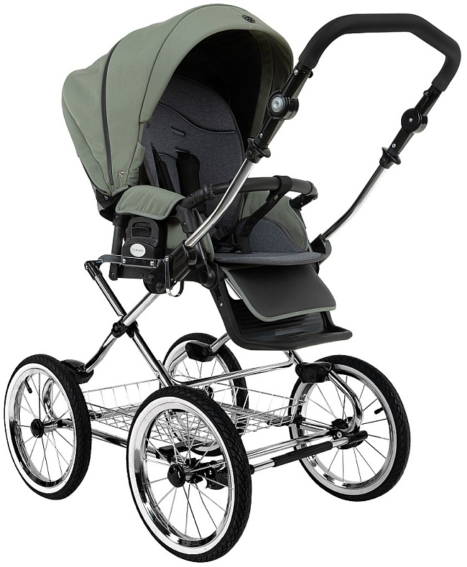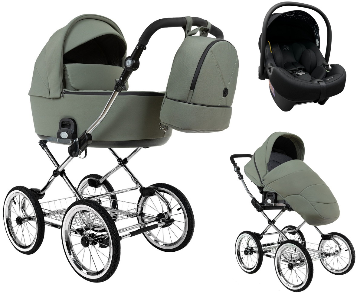Детская коляска Roan Bass Next Classic d14 2.0 3 в 1 с автокреслом Tutis Elo Lux EduSky Black BSNC/92/2 Sage Green/Black/руч.Black