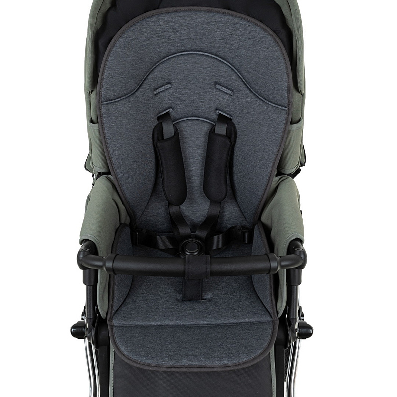 Прогулочный блок имеет пятиточечные ремни безопасности и бампер-ограничитель с отделкой из экокожи. Бампер можно отсоединить с одной стороны и просто откинуть для удобства посадки ребенка.