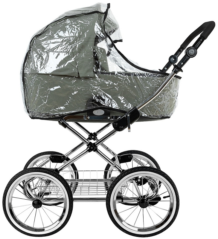 Накидка на люльку имеет дополнительный отворот со смотровым окном, сам отворот полностью закрывает ребенка от непогоды и крепится за счёт магнитов.