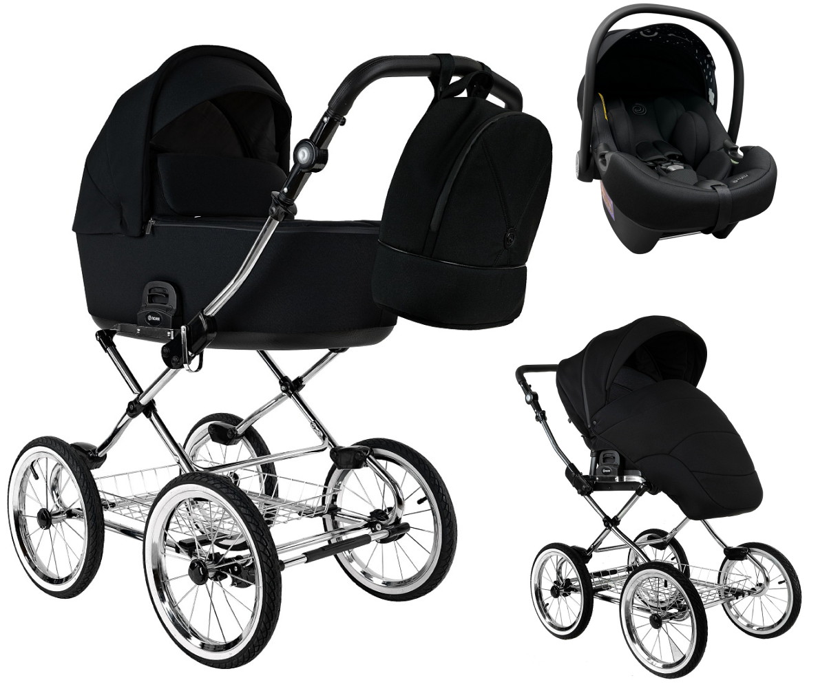 Детская коляска Roan Bass Next Classic d14 2.0 3 в 1 с автокреслом Tutis Elo Lux EduSky Black BSNC/95/2 Caviar/Black/руч.Cappuccino