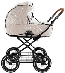 Накидка на люльку имеет дополнительный отворот со смотровым окном, сам отворот полностью закрывает ребенка от непогоды и крепится за счёт магнитов.