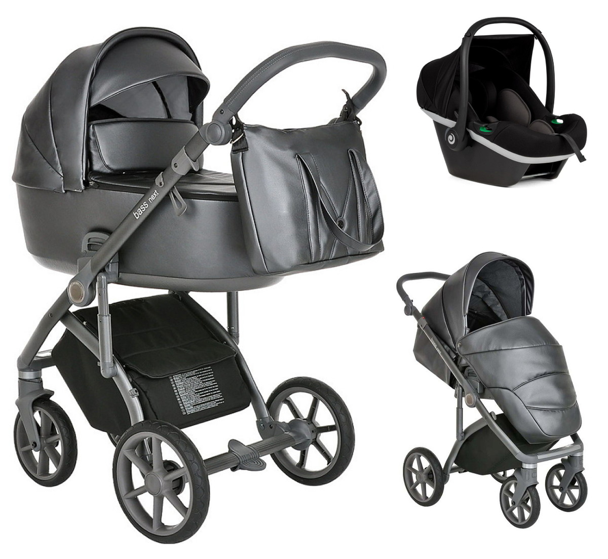 Детская коляска Roan Bass Next Кожа 3 в 1 с автокреслом Tutis Elo Black RN083/1 Graphite Pearl