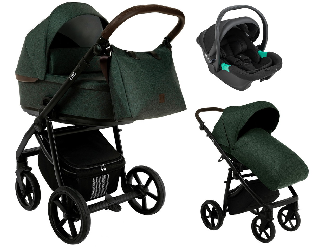 Детская коляска Roan Esso 2025 3 в 1 с автокреслом Pituso Santiso Pro Black ESS113/1 Dark Green/Black