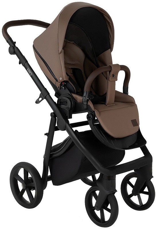 Детская коляска Roan Esso 2025 Кожа 2 в 1 ESSK/211/1 Camel/Black/руч.Тем.коричневый