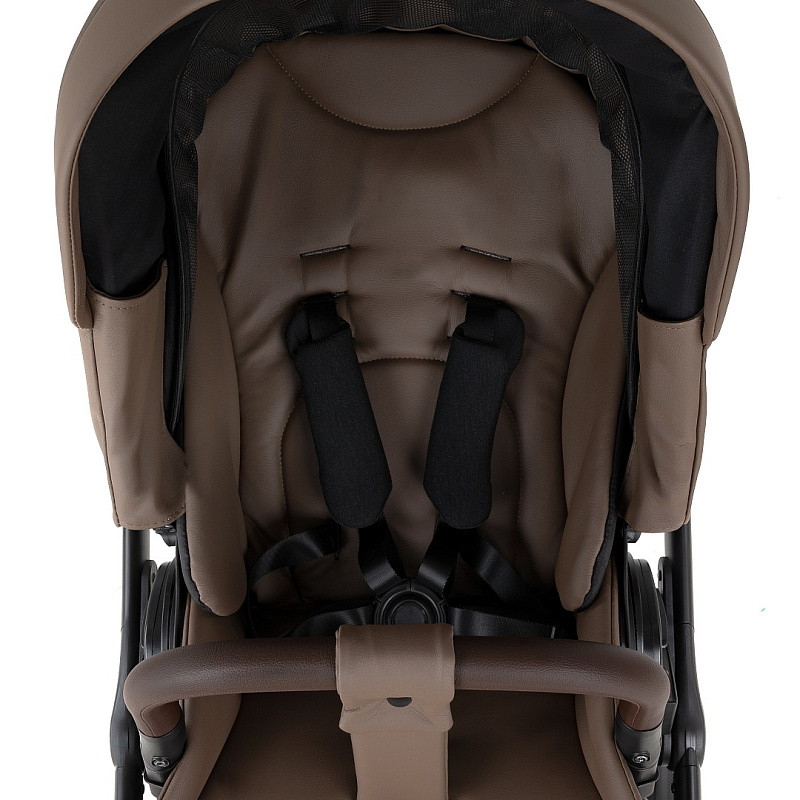 Прогулочный блок имеет пятиточечные ремни безопасности и бампер-ограничитель с отделкой из экокожи. Бампер можно отсоединить с одной стороны и просто откинуть для удобства посадки ребенка.