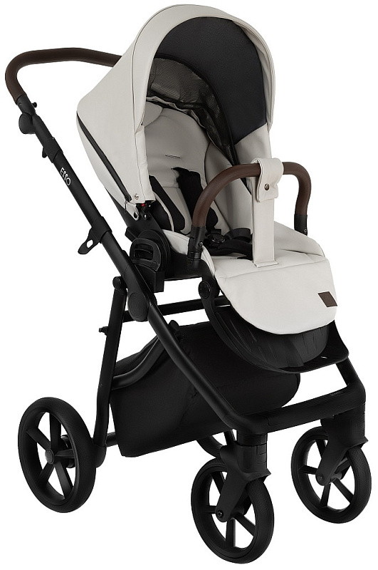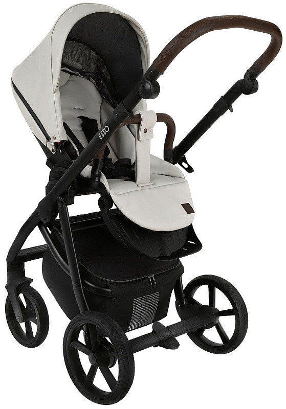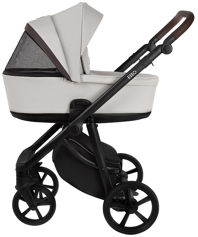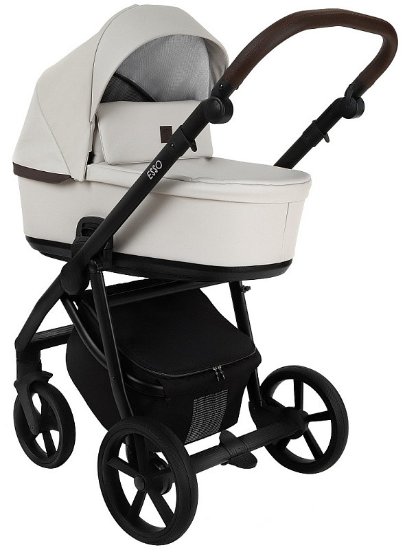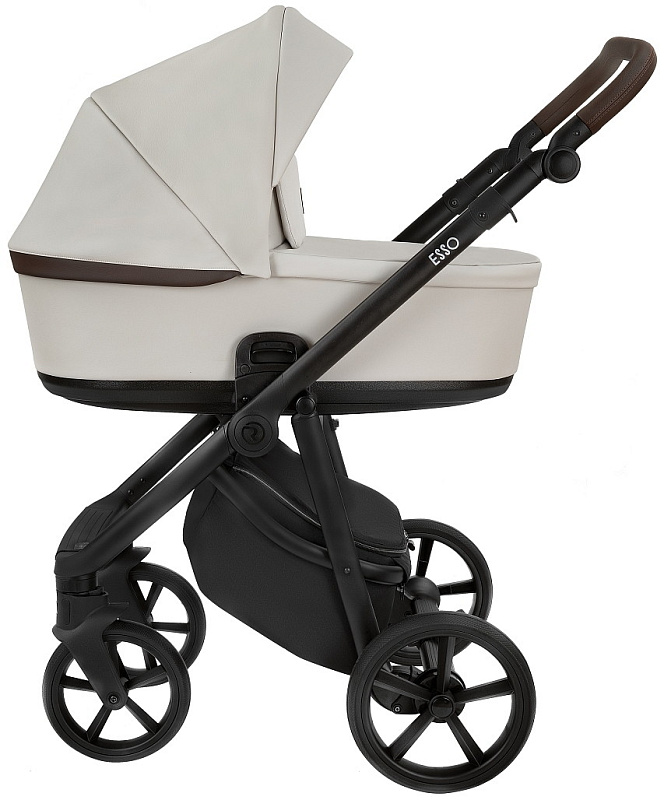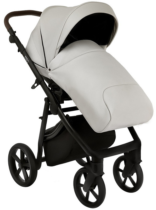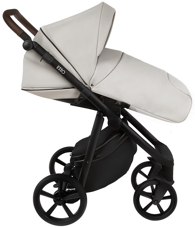Детская коляска Roan Esso 2025 Кожа 2 в 1 ESSK/213/1 Island Stone /Black/руч.Тем.коричневый