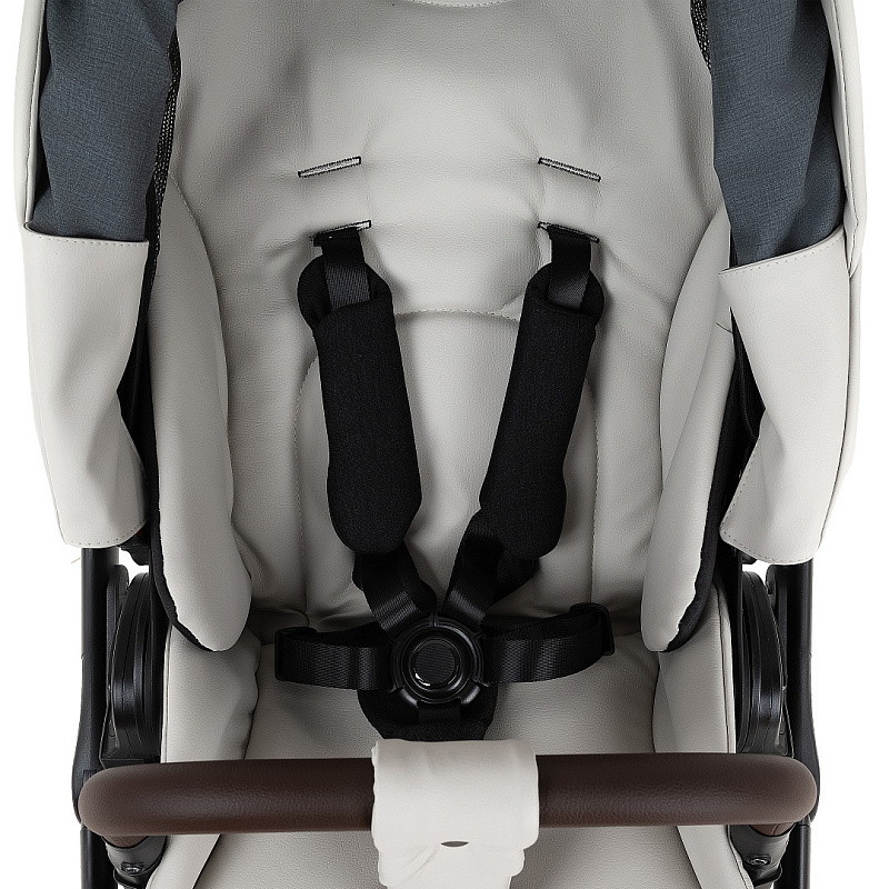 Прогулочный блок имеет пятиточечные ремни безопасности и бампер-ограничитель с отделкой из экокожи. Бампер можно отсоединить с одной стороны и просто откинуть для удобства посадки ребенка.