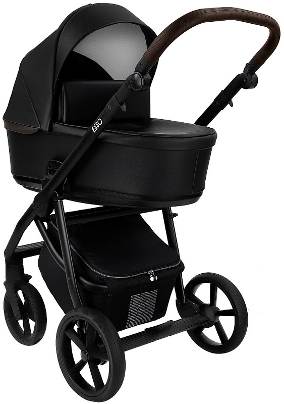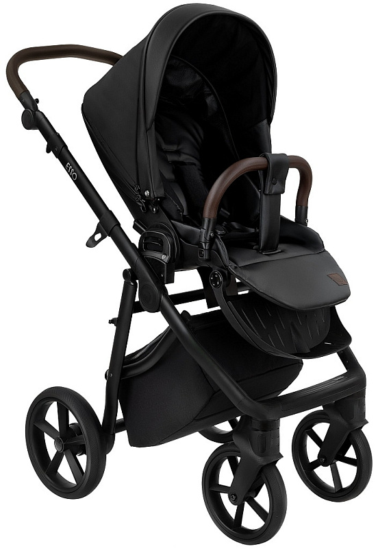 Детская коляска Roan Esso 2025 Кожа 3 в 1 с автокреслом Pituso Santiso Pro ESSK/210/1 Black /Black/руч.Тем.коричневый