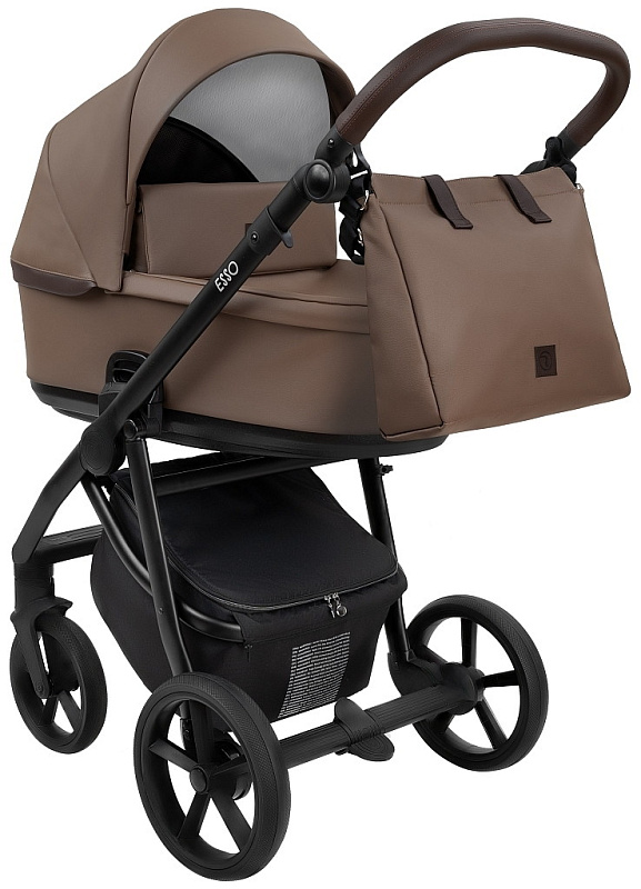 Детская коляска Roan Esso 2025 Кожа 3 в 1 с автокреслом Tutis Elo Black ESSK/211/1 Camel/Black/руч.Тем.коричневый