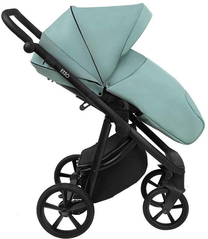 Детская коляска Roan Esso 2025 Кожа 3 в 1 с автокреслом Tutis Elo Black ESSK/214/1 Misti Mint/Grey/руч.Черный