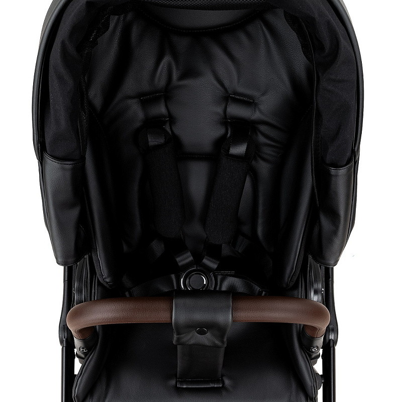 Прогулочный блок имеет пятиточечные ремни безопасности и бампер-ограничитель с отделкой из экокожи. Бампер можно отсоединить с одной стороны и просто откинуть для удобства посадки ребенка.