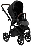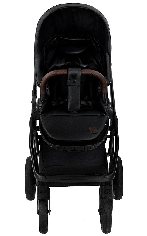 Детская коляска Roan Esso 2025 Кожа 3 в 1 с автокреслом Tutis Elo Lux EduSky Black ESSK/210/1 Black /Black/руч.Тем.коричневый