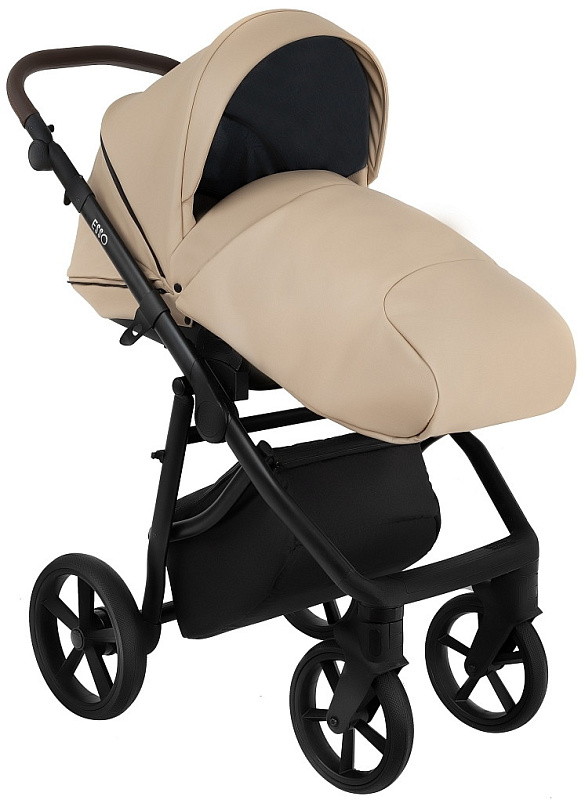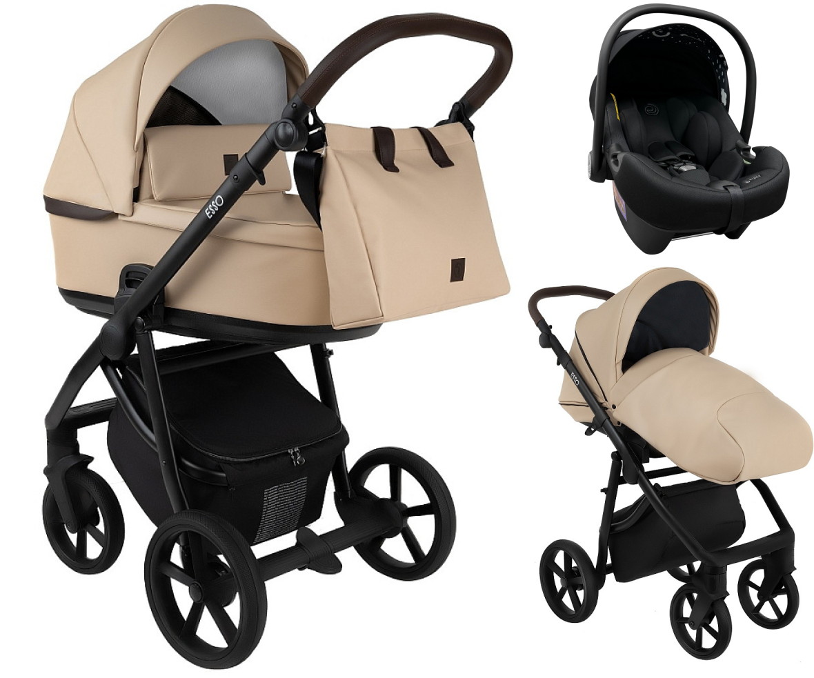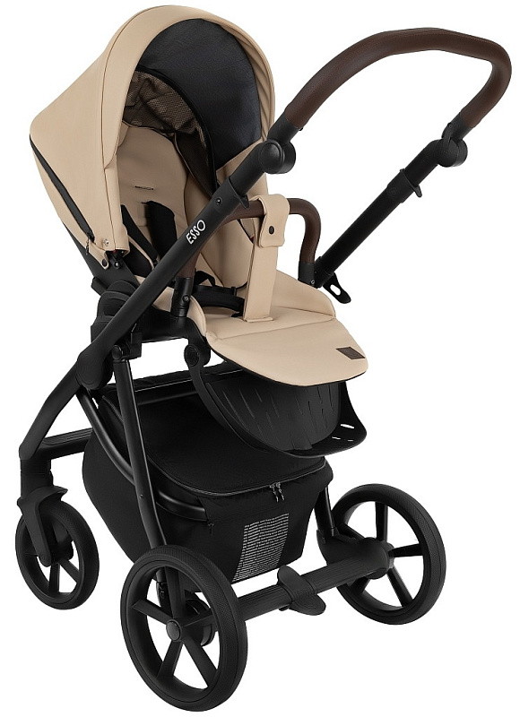 Детская коляска Roan Esso 2025 Кожа 3 в 1 с автокреслом Tutis Elo Lux EduSky Black ESSK/212/1 Caramel/Black/руч.Тем.коричневый