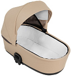 Капюшон (капор) не съемный. Имеет встроенную ручку для переноски люльки. Ручка отцентрована, что позволяет переносить люльку строго горизонтально без перекоса. В капюшоне вшит клин из москитной сетки, закрытый отворотом. Капюшон имеет 2 положения регулировки при помощи двухстороннего кнопочного механизма, внутренняя отделка — 100% хлопок.