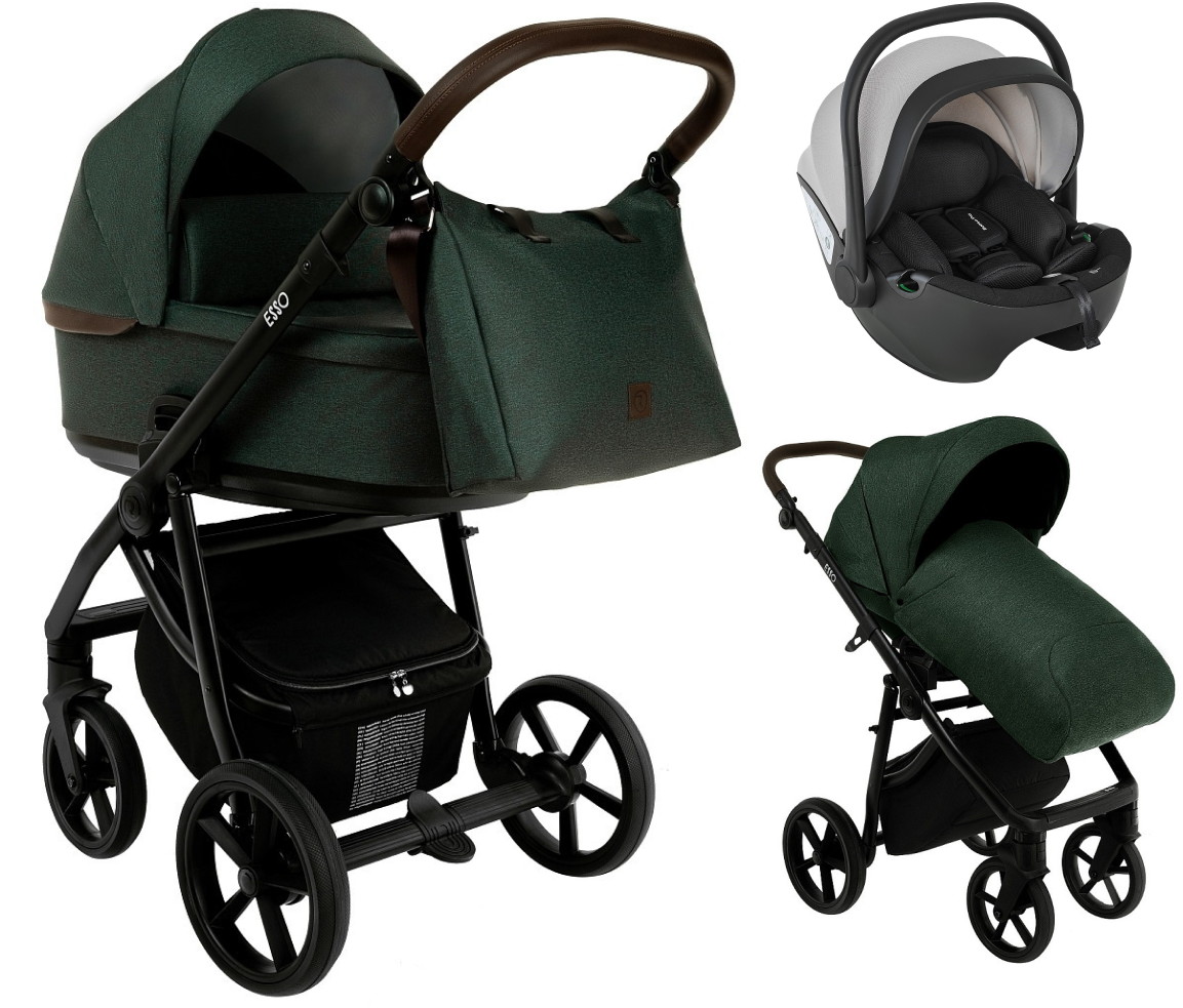 Детская коляска Roan Esso 3 в 1 с автокреслом Pituso Baesa Pro Black,Beige Canopy ESS113/1 Dark Green/Black