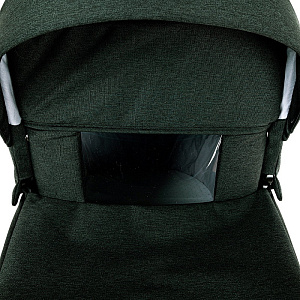 Прогулочный блок имеет отдельный функциональный капор, который можно снять. В капоре есть отсек с антимоскитной сеткой и дополнительный отсек для увеличения покрытия, также есть дополнительный козырёк.
