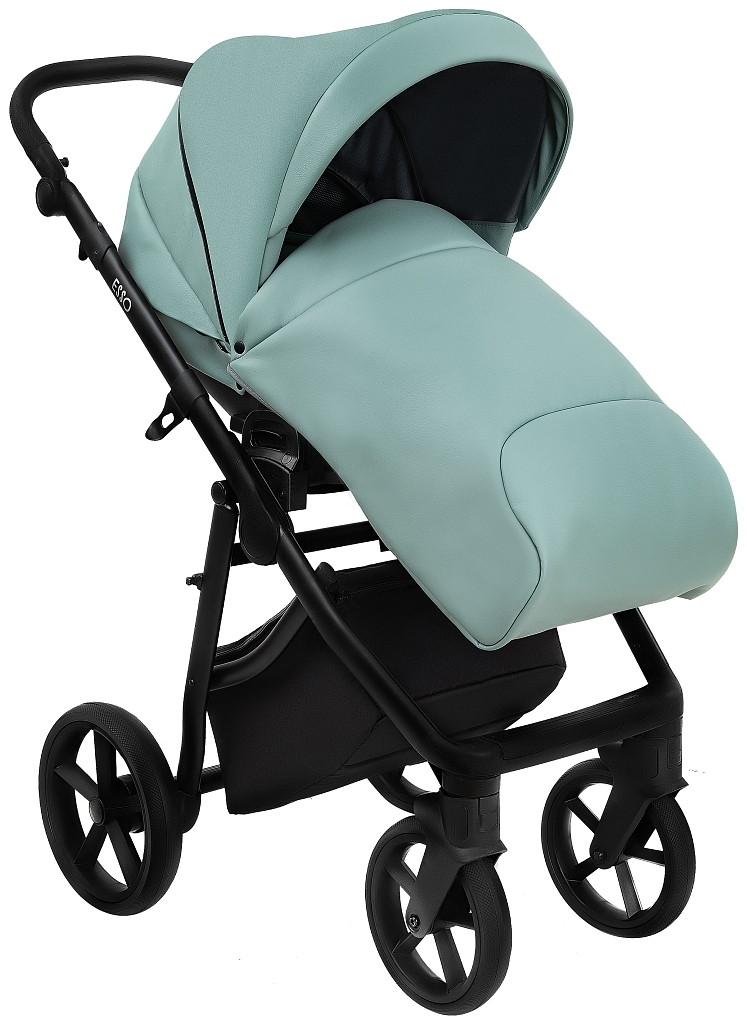 Детская коляска Roan Esso Кожа 3 в 1 с автокреслом Pituso Baesa Pro Black ESSK/214/1 Misti Mint/Grey/руч.Черный