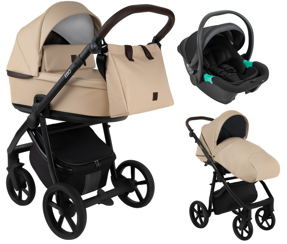 Детская коляска Roan Esso Кожа 3 в 1 с автокреслом Pituso Santiso Pro ESSK/212/1 Caramel/Black/руч.Тем.коричневый